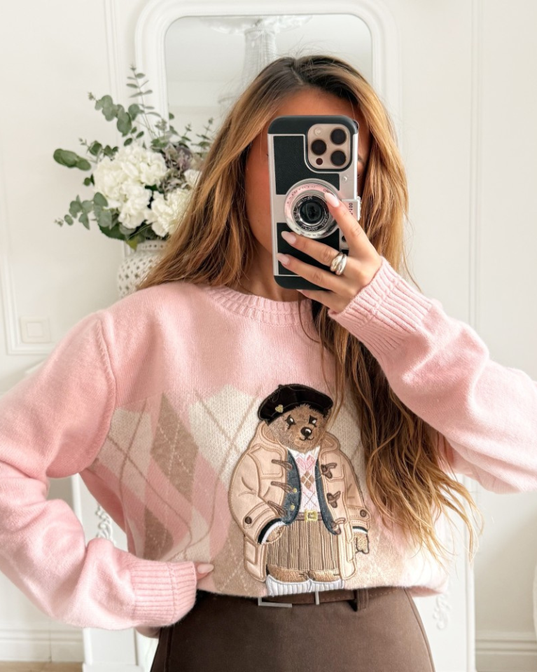 Sweet like candy and made for the spotlight. This soft bubblegum pink knit is the ultimate coquette essential. With its whimsical trumpet-playing bear and classic argyle details, it’s giving "preppy girl summer in Paris" meets "balletcore dreams." A playful, editorial piece that turns any casual look into a main character moment.
